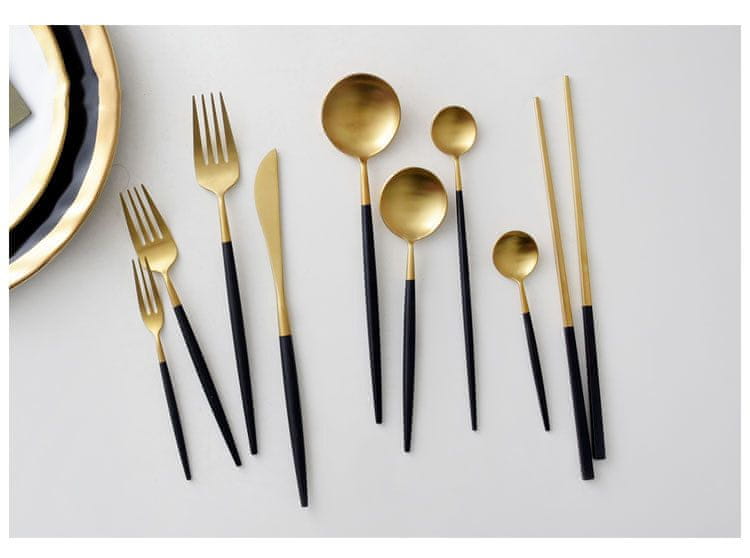 Komplet jedilnega pribora v portugalskem slogu – mat črna in zlata