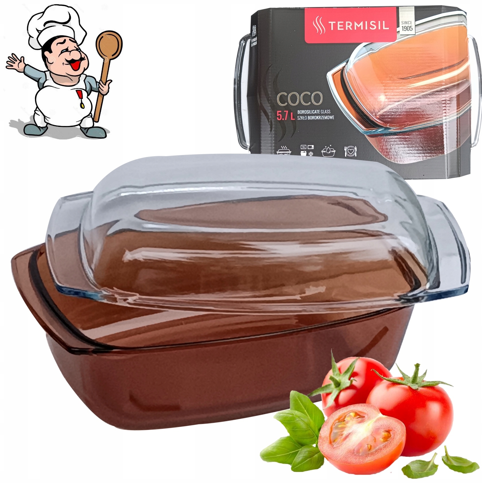 ✔️5,7L okrogla posoda za pečico s pokrovom iz borosilikatnega stekla priznane blagovne znamke Termisil.