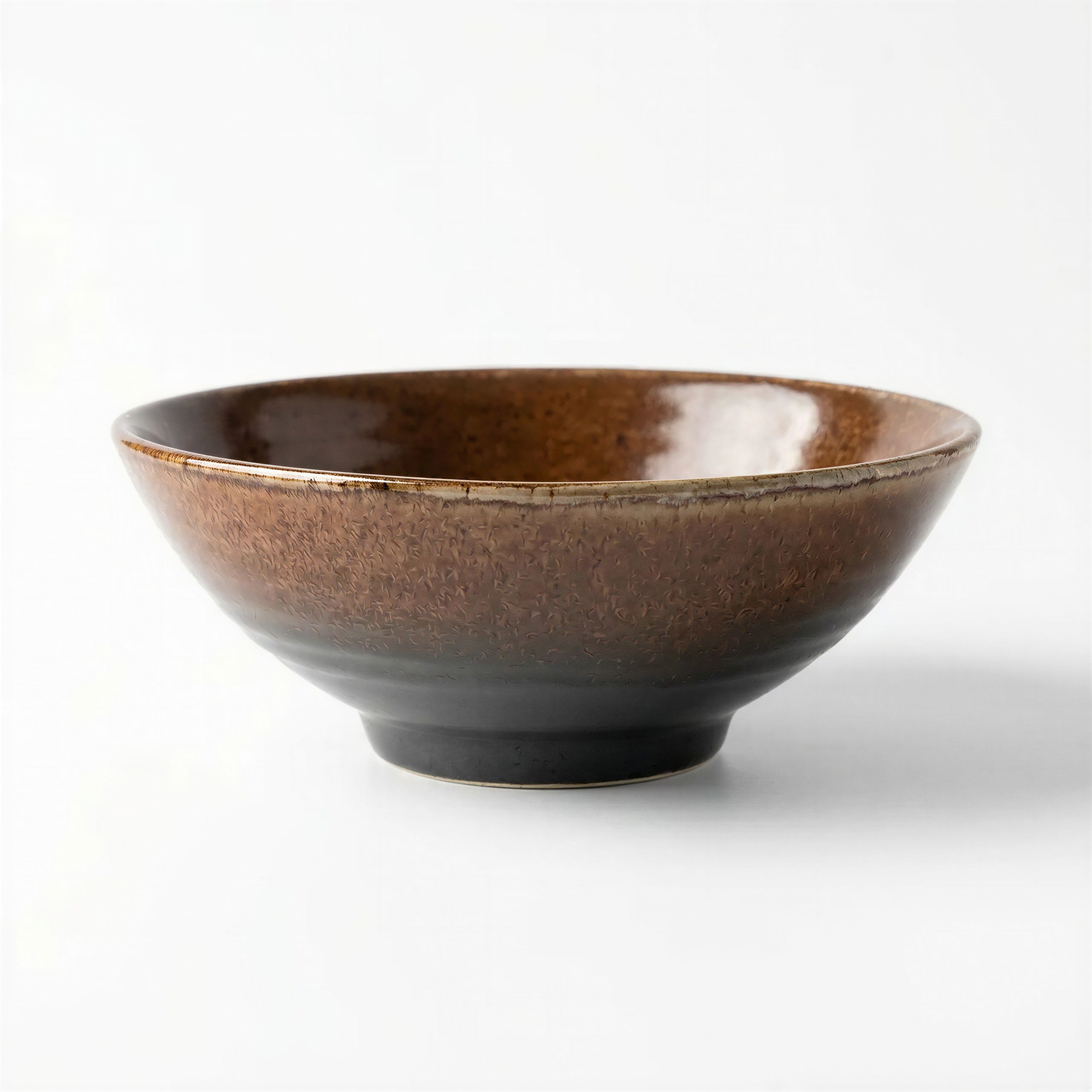 Keramična skleda za ramen ONDES je prostorna in elegantna posoda v črni barvi z rjavimi poudarki, ki je primerna tudi za juhe, solate in predjedi.
