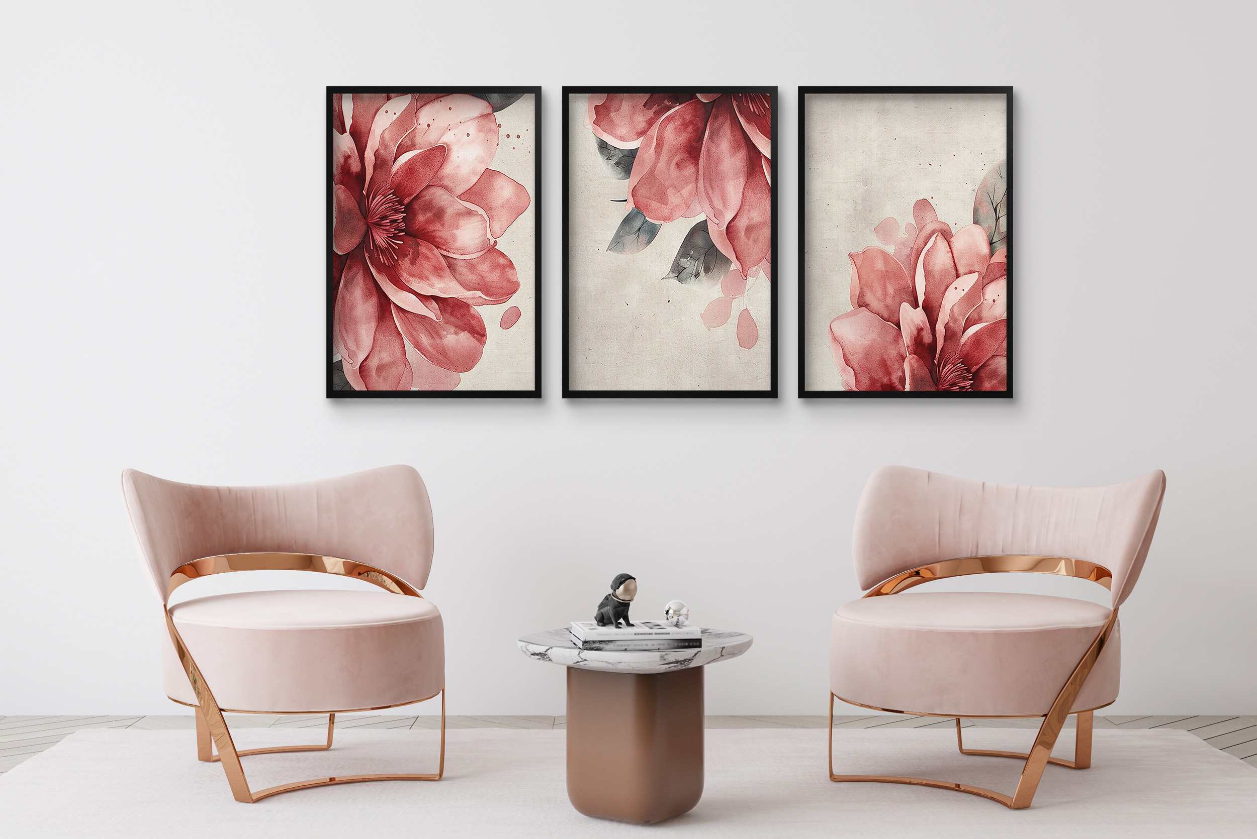 shumee Stenski umetniški plakati v črnem okvirju Roza cvetovi, spalnica