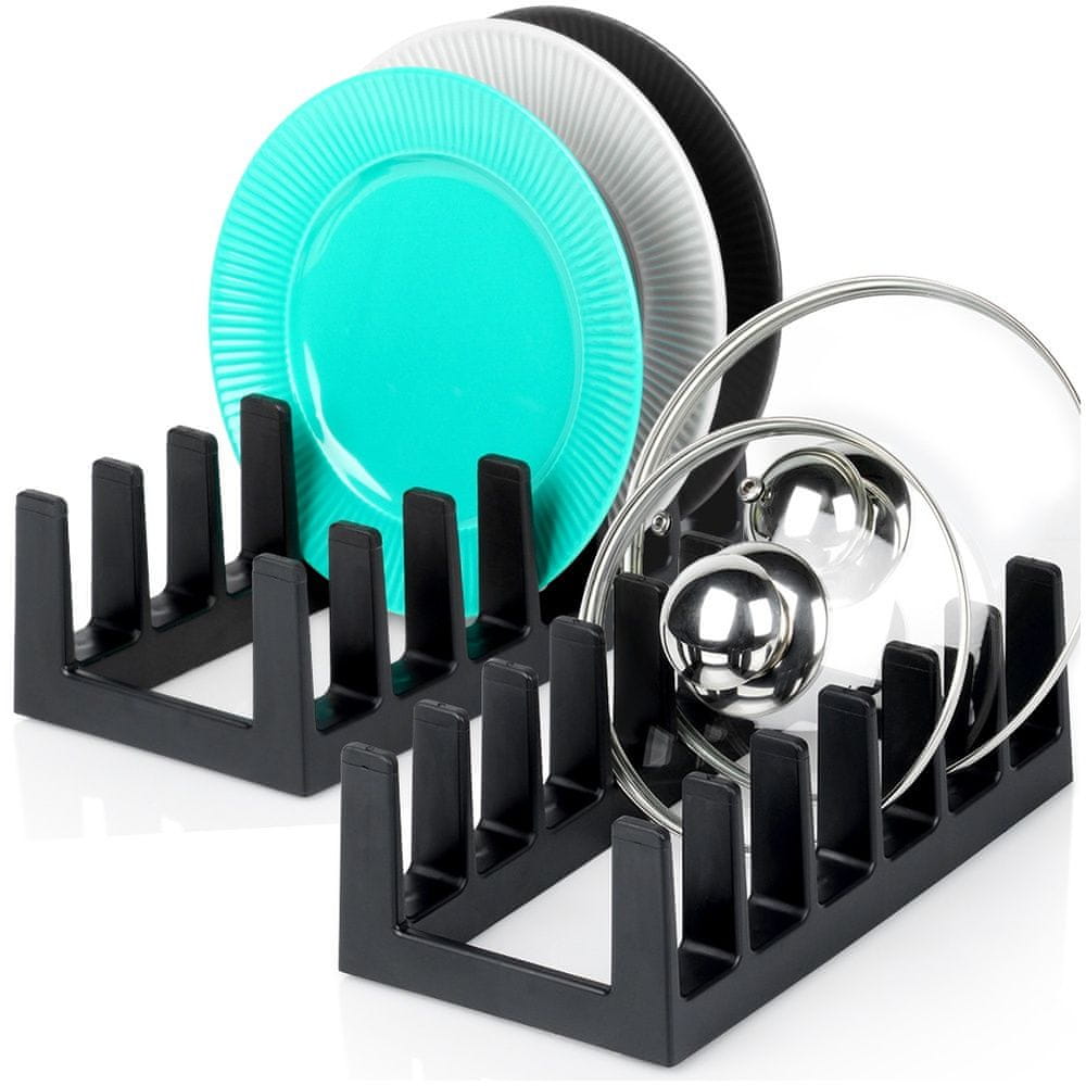 Stojalo za pokrove in krožnike črne barve 28×15×9 cm 2 kosa. Celoten opis