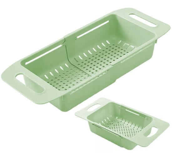 Izjemno praktičen, nastavljiv odcejalnik za posodo. Odlična rešitev, ki prihrani dragoceni prostor in jo je mogoče prilagoditi vsakemu pomivalnemu predelu. Primeren je za uporabo na potovanjih ali v majhnih kuhinjah. Ko je razgrnjen, doseže dolžino do 47 cm, tako da vanj lahko spravite komplet jedilnega pribora, kozarcev in krožnikov. Zaradi perforiranega dna se lahko uporablja tudi kot cedilo.