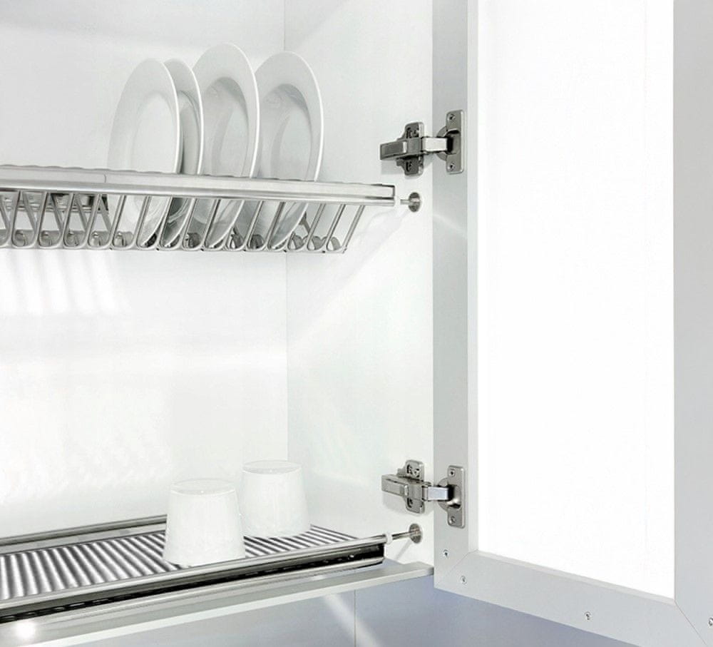 Ocejalnik za posodo KAPIO TIP 2 je praktičen in prostorsko varčen dodatek za kuhinjo, namenjen montaži v zgornje kuhinjske omarice s širino korpusa 60 cm in minimalno globino 30 cm. Zaradi kompaktnih dimenzij (ŠxGxV): 56,5×28×6,5 cm in teže 1,73 kg ne…