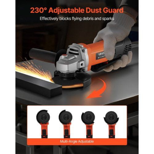 VEVOR Kotni brusilnik 270x90x75 mm 1143 mm nastavljiv zaščitni pokrov za prah