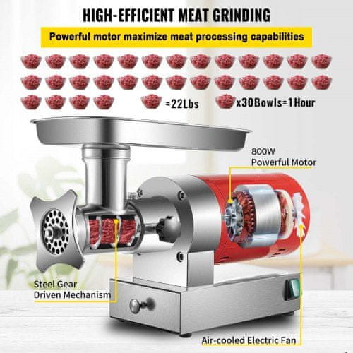 VEVOR Mlinček za meso 5G-22A 54x22x32 cm Rdeč
