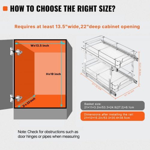 VEVOR Organizator omare izvlečni drsni predal 305x533x381 cm jeklo