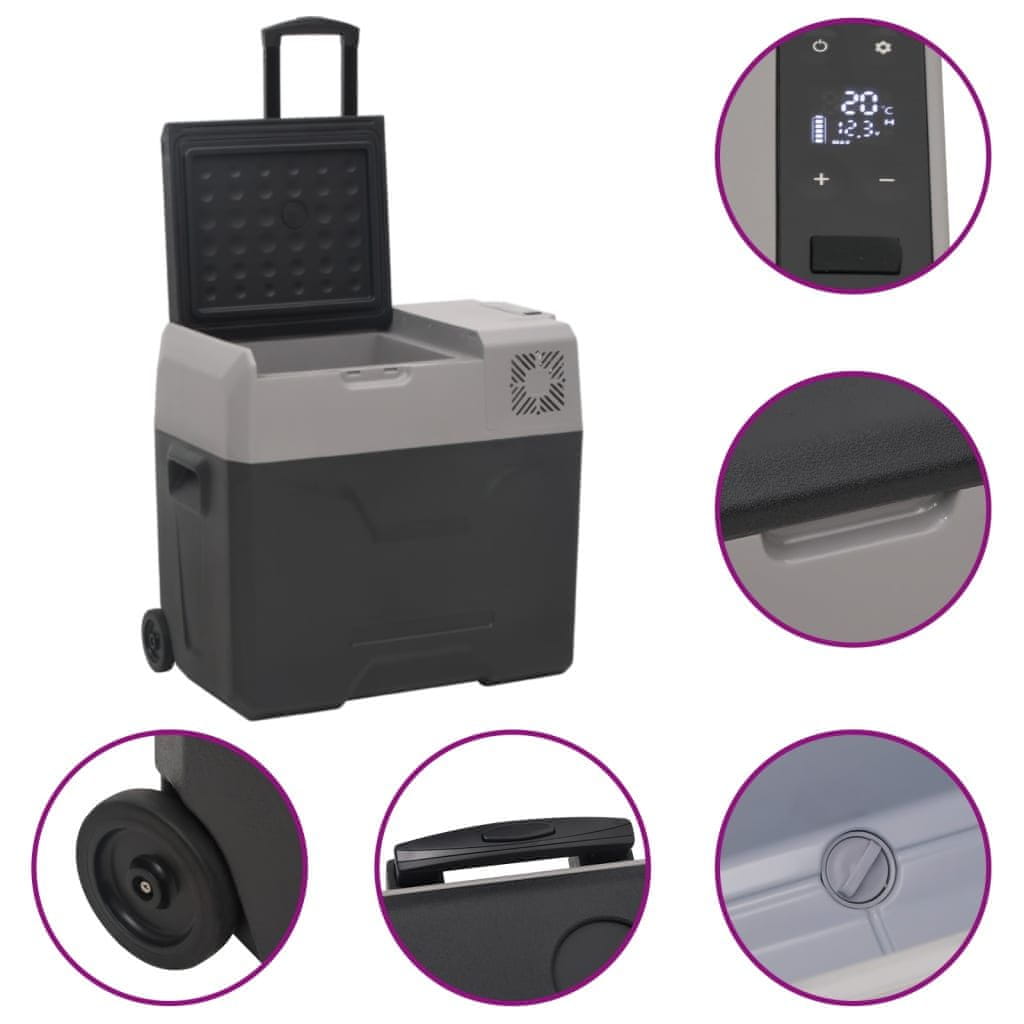 • Prenosna zasnova: Zahvaljujoč teleskopskemu ročaju in kolesom lahko hladilno skrinjo za avto enostavno premikate povsod. Je idealna oprema za festivale, pohode, piknike in kampiranje.