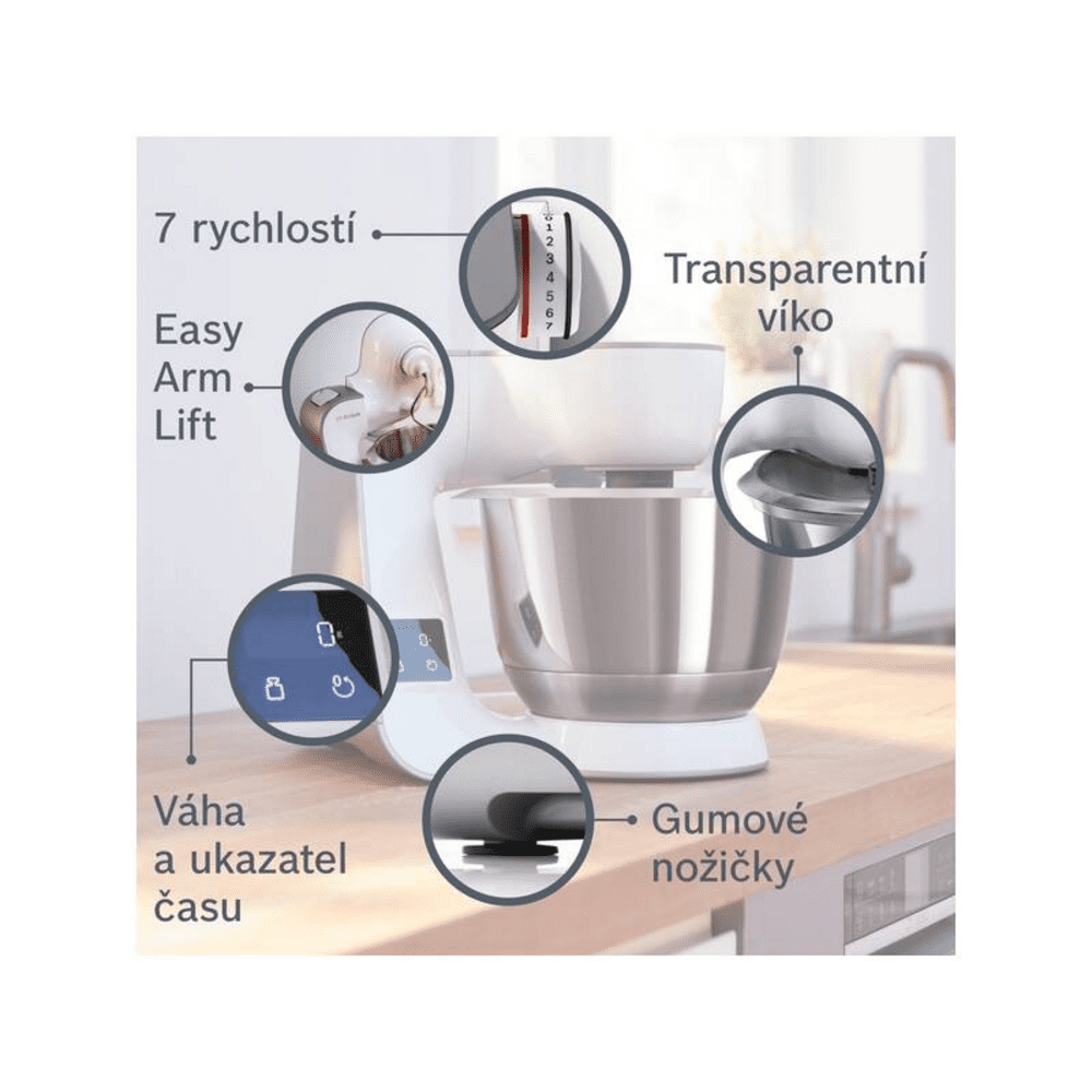 Motor z močjo 1000 W brez težav obdela tudi gostejša testa in omogoča učinkovito pripravo surovin.