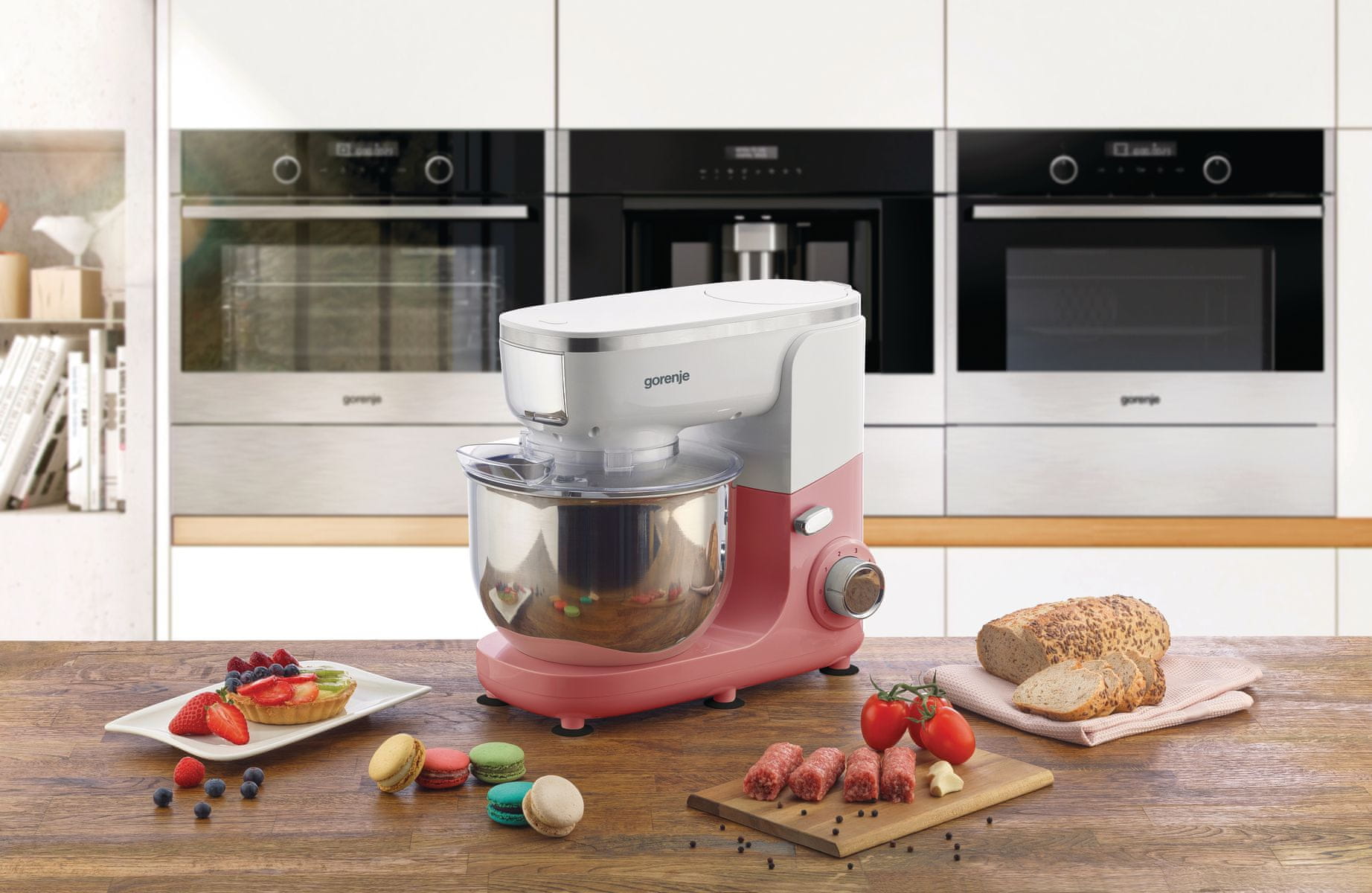 Kuhinjski robot vam pomaga prihraniti čas in energijo, hkrati pa da popolne rezultate. Močan aparat odlikujejo odlične mešalne lastnosti in natančna kontrola v vsakem trenutku. Gorenjev kuhinjski robot ima moč in hitrost, hkrati pa je dovolj občutljiv, da odlično premeša vse od goste mase za kekse do občutljivih beljakov. Močan motor kot za šalo opravi z gnetenjem, mešanjem in stepanjem.