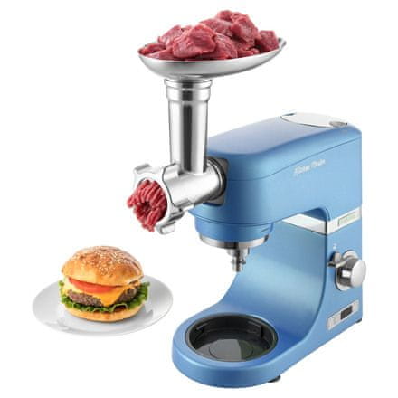 Robot je opremljen z veliko nerjavečo posodo s prostornino 4,5 litra in dodatno opremo, vključno z mešalnikom, mlinčkom za meso in nastavki za stepanje, gnetenje in mešanje. LED zaslon, 8 hitrosti in pulzni način omogočajo natančen nadzor glede na vrsto pripravljene jedi. Zahvaljujoč trdni konstrukciji in kovinskim zobnikom ponuja dolgo življenjsko dobo in zanesljivo delovanje tudi pri pogosti uporabi.