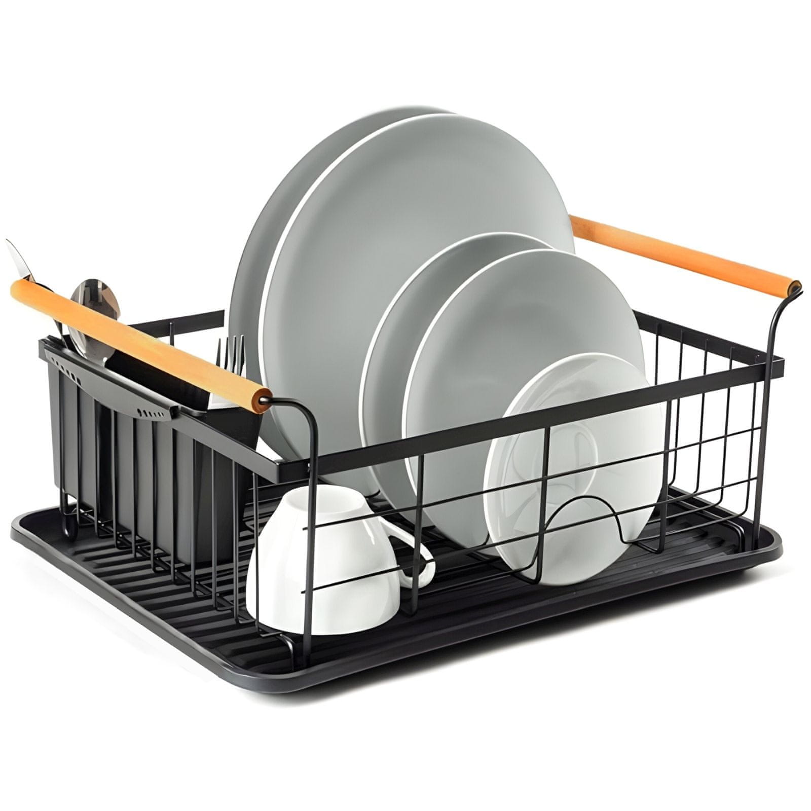 Retoo Posušilnik za posodo, kovinski odcejalnik z pladnjem za jedilni pribor in pladnjem - črn
