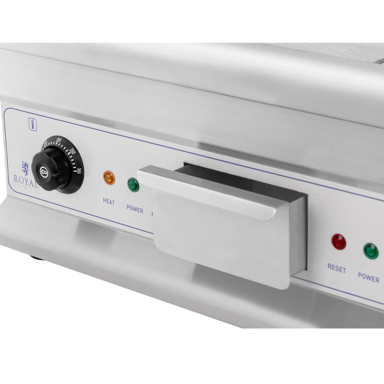 Royal Catering Dvojna gladka rebrata žar plošča z predalom za maščobo 230 V 2x 3200 W