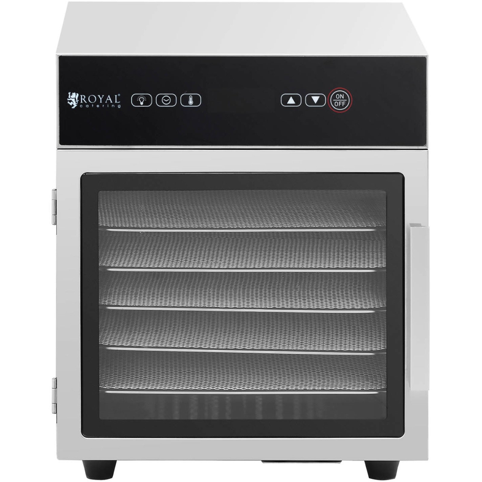 S sušilnikom za hrano Royal Catering lahko pripravite sušene dobrote doma, v restavraciji ali baru. Moč naprave je 500 W. Temperaturo lahko nastavite med 30 in 90 °C. Čas lahko nastavite med 0,5 in 24 urami. Šest nerjavečih jeklenih rešetk lahko sprejme velike količine hrane. Sprednja stran iz kaljenega stekla vam omogoča vpogled v notranjost, ne da bi morali odpreti vrata.