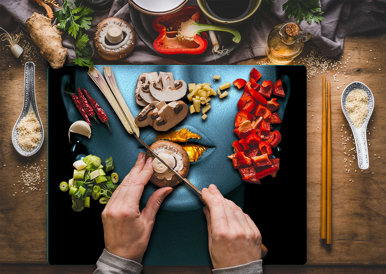shumee Deska za rezanje steklene ploe 52x40 Face Woman