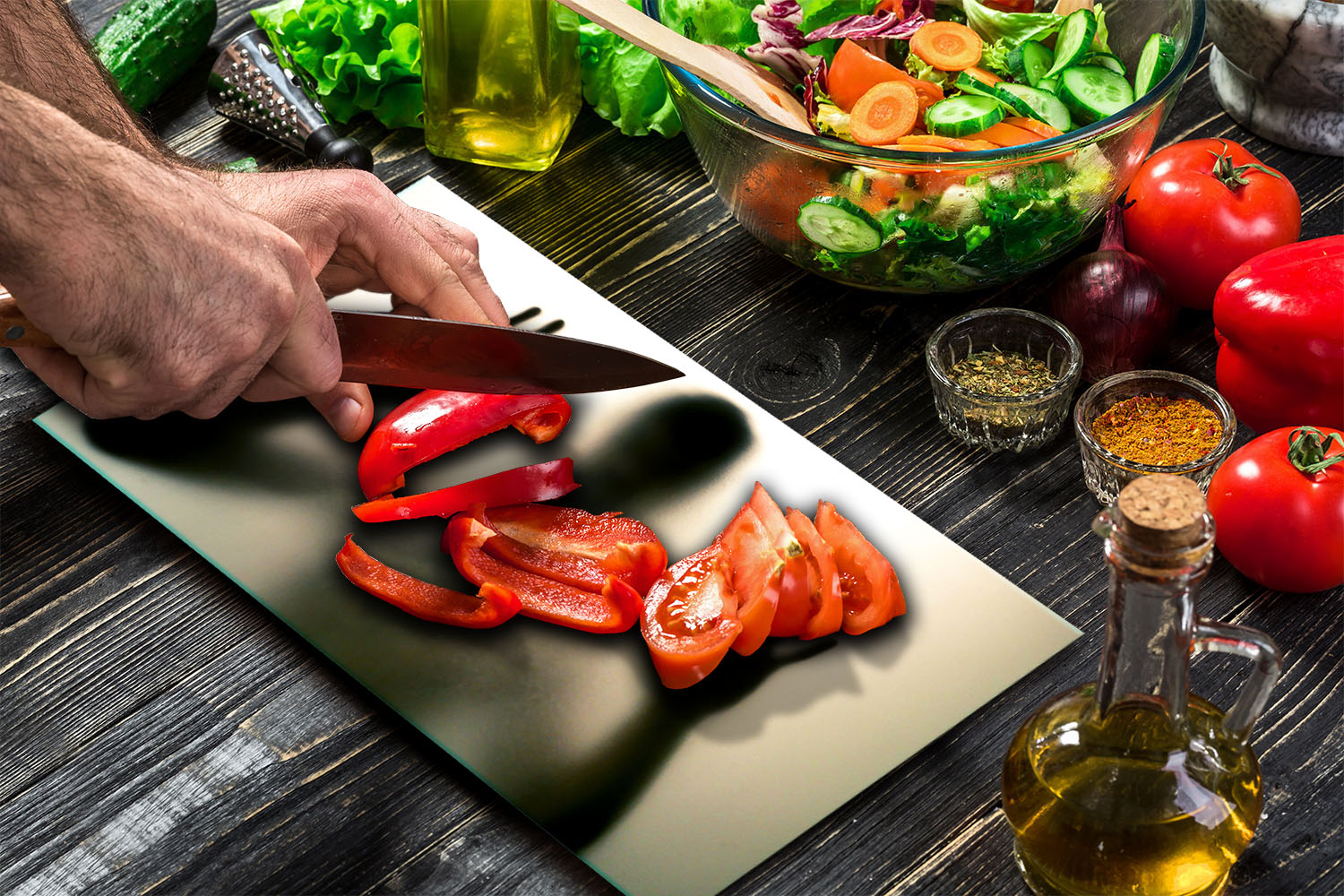 Sodobna, univerzalnaSteklena ploaZaitna, deskaZa sekanje peiInduktivnoIn ne samo