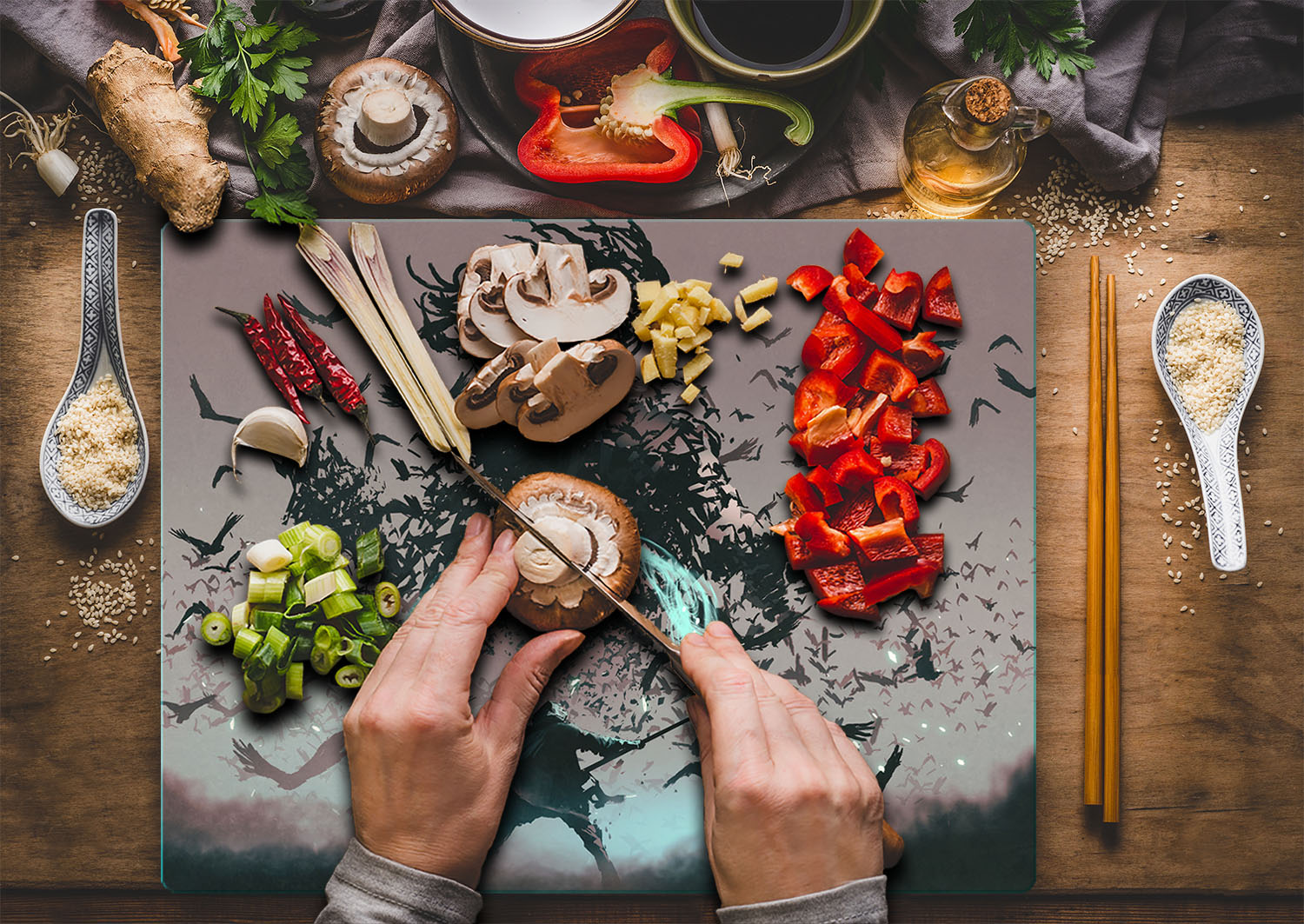 Deska za rezanje steklenih plo 52×40 rno modno Celoten opis