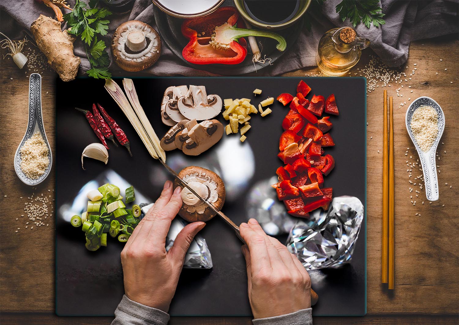 Sodobna, univerzalnaSteklena ploaZaitna, deskaZa sekanje peiInduktivnoIn ne samo