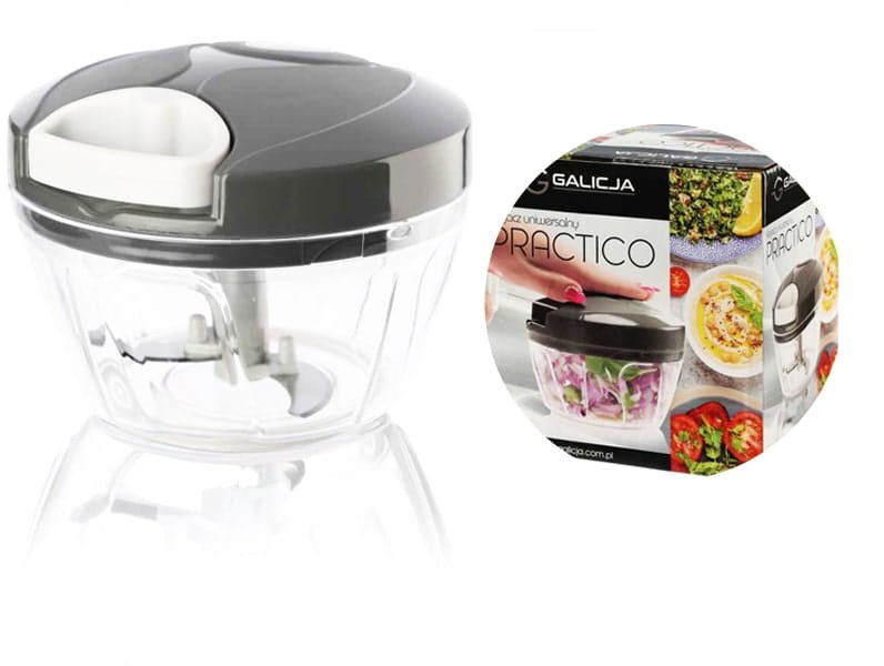 Univerzalni rezalnik zelenjave: Ta univerzalni rezalnik je zasnovan za zelenjavo, sadje, zelišča, suho sadje in drugo. Ima priročen mehanizem z vrvico, ki vam omogoča hitro in učinkovito sekljanje izbranega izdelka z le nekaj potegi. Število potegov vam omogoča nastavitev finosti reza. Idealen za pripravo salse ali omak. Rezalnik ima tri vrteča se rezila, nameščena na različnih višinah, in nedrsečo podlago. Tri visokokakovostna rezila iz nerjavečega jekla, nameščena na različnih višinah, pospešijo sekljanje. Prozorne stene posode vam omogočajo, da vidite, kdaj je dosežena želena stopnja sekljanja. Rezalnik je opremljen z nedrsečo podlago. Specifikacije: Znamka: Galicja Material: Plastika Višina: 9 cm Premer: 12,7 cm Uporaba: Univerzalni rezalnik za zelenjavo, sadje, zelišča, suho sadje, čebulo in drugo. Barva: siva Prednosti izdelka: Uporablja se za sekljanje sestavin. Ima priročen mehanizem z vrvico, ki vam omogoča učinkovito in hitro sekljanje izbranega izdelka z le nekaj potegi. Ima tri vrteča se rezila, nameščena na različnih višinah posode. Podstavek je opremljen z nedrsečimi elementi. Naprava je preprosta in priročna za uporabo ter enostavna za čiščenje. Rezila in pokrov so primerni za pomivanje v pomivalnem stroju; mehanizem z vrvico je treba očistiti ročno (ne namakajte ga v vodi). S tem rezalnikom lahko pripravite solate, omake in dipe po receptih iz trendovske in zdrave mediteranske kuhinje, pa tudi tradicionalne namaze iz skute z zelenjavo, jajci ali ribami. Seseklja tudi gobe za omake ter oreščke in drugo suho sadje za pecivo.