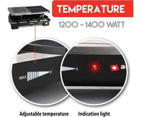 Je zasnovan za prijetne in družabne večere, kjer se priprava hrane združuje s sproščenim klepetom. Ker je žar postavljen na mizi, kot gostitelj ne boste več ločeni od svojih gostov. Z raclette setom za 8 oseb, ki vključuje rešetko ter 8 ponvic in lopatic, lahko v obroku uživa tudi večja družba. Poleg tega je žar izjemno vsestranski, saj zlahka ustreže vsem okusom – od ljubiteljev mesa in rib do tistih, ki imajo raje vegetarijansko ali vegansko hrano.