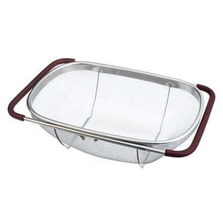 To fleksibilno mrežasto cedilo iz visokokakovostnega nerjavečega jekla 18/10 je idealen pomočnik za vsakodnevno kuhinjsko delo. Zahvaljujoč nastavljivim ročajem v mat bordo barvi ga lahko enostavno namestite na različne vrste pomivalnih korit, kar zagotavlja maksimalno udobje in praktičnost pri pomivanju sadja, zelenjave ali precejanju testenin.