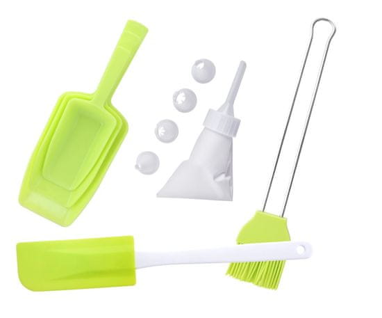 Sestava seta: strgalo za testo, vrečka za smetano, set 3 lopatic, čopič