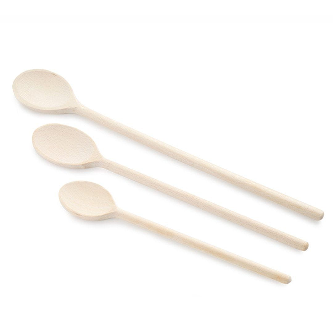 Eva set treh lesenih kuhalnic dolžine 25, 30 in 35 cm z ovalno oblikovanim spodnjim mešalnim delom, lahko uporabite tudi kot žlico. Ni primerno za pomivanje v pomivalnem stroju.