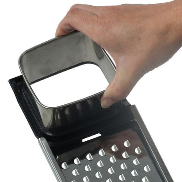 Nerjaveče jekleno strgalo s polkrožnimi luknjami za dolge njoke, njoke in spätzle. Pladenj za testo iz nerjavečega jekla s plastičnim vodilom zagotavlja hitro in varno oblikovanje testenin. Zahvaljujoč zamašku se strgalnik zelo dobro drži na posodi.- material: nerjavno jeklo- mere: 11 × 31,5 × 6,5 cm