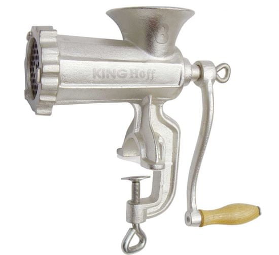 Vrhunski, tradicionalni ročni mlin za meso. Izdelek priznane blagovne znamke Kinghoff , model KH-1427. Ročni stroj za mletje mesa odlikuje preprost in praktičen dizajn, ki je dokazan že vrsto let! Uporablja se v domačih kuhinjah, menzah in restavracijah. Imeli so meso in se dobro obnese pri pripravi sadnih kašic.