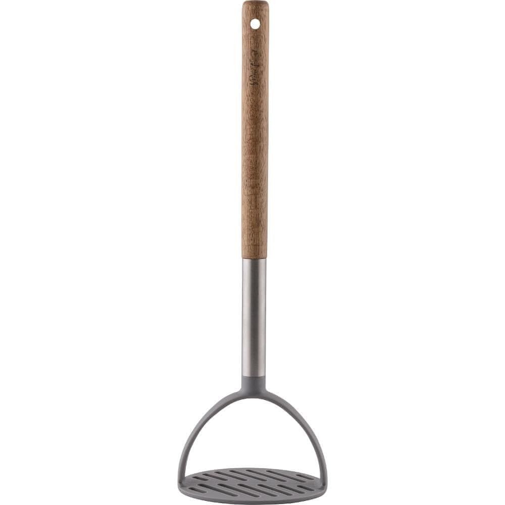 Najlonski pribor z lesenim ročajem (akacija) Temperaturno odporen do 210 °C Primeren za pomivanje v pomivalnem stroju 3 leta garancije Material: akacija, nerjavno jeklo, najlon Barva: rjava, siva Dimenzije: dolžina 29 cm Celoten opis
