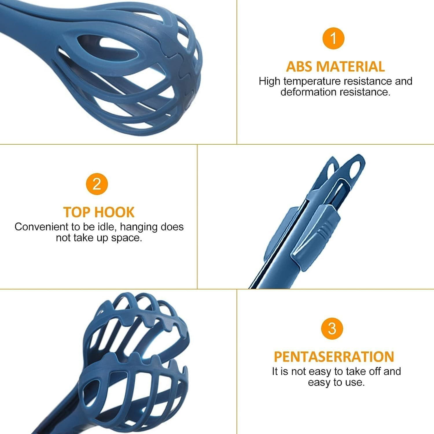Ta pametni kuhinjski pripomoček lahko uporabljate kot metlico za stepanje in delno kot klešče. Orodje je izdelano iz modre plastike in ima zaklep na vrhu gredi, ki omogoča enostavno preklapljanje med različnimi funkcijami.