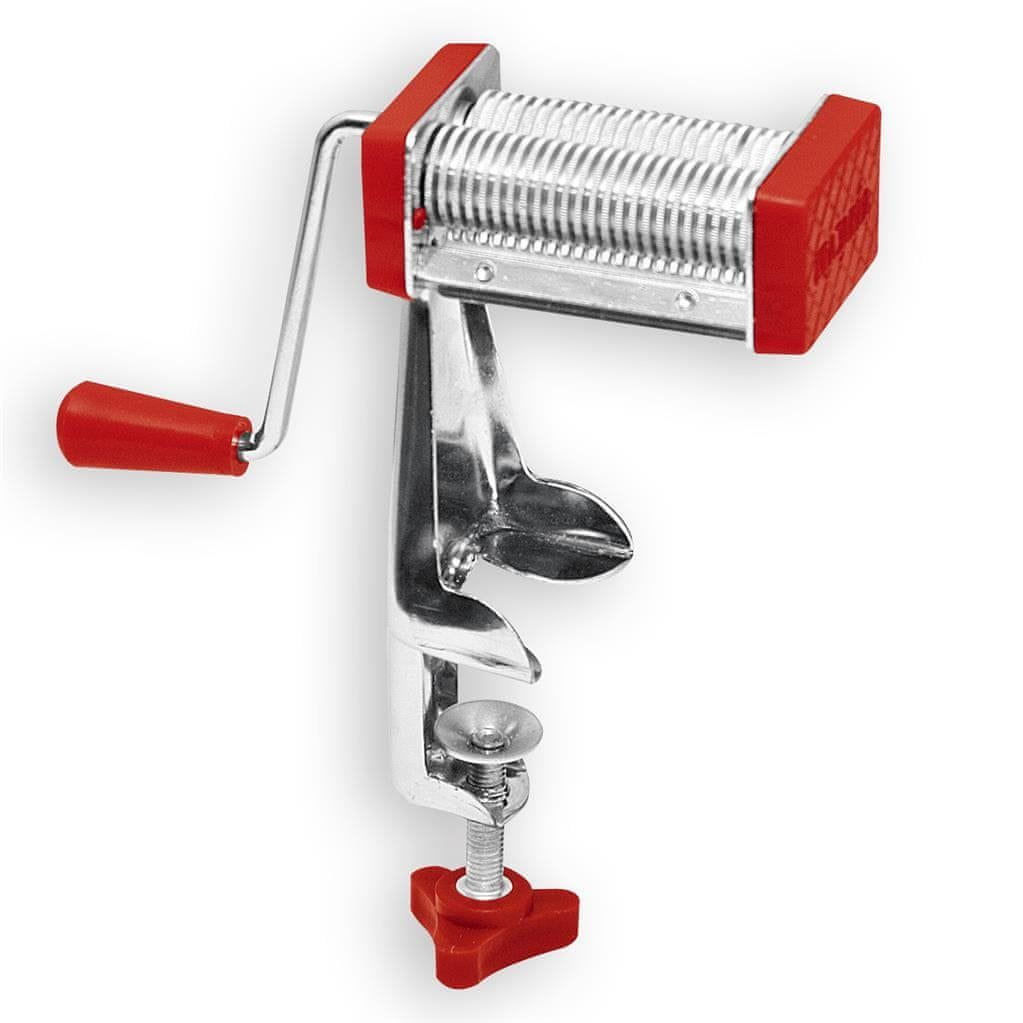 • Rezalnik rezancev, ročni, mehanski – rezanje posušenih listov razvaljanega testa v fine jušne rezance – pritrditev s pritrdilnim vijakom – kovinski / plastični pribor – največja širina vstavljenega rezalnika …