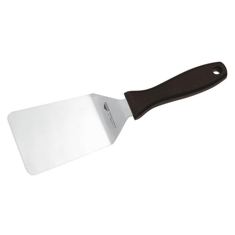 Upognjena lopatka za nalaganje in obračanje, premera 9cm, narejena iz kvalitetnega nerjavečega jekla, z ergonomskim ročajem iz polipropilena. Kuhinjski pripomočki italijanskega proizvajalca PADERNO sodijo v sam svetovni vrh kvalitetnih in inovativnih izdelkov, ki so kos najtežjim nalogam in … Celoten opis