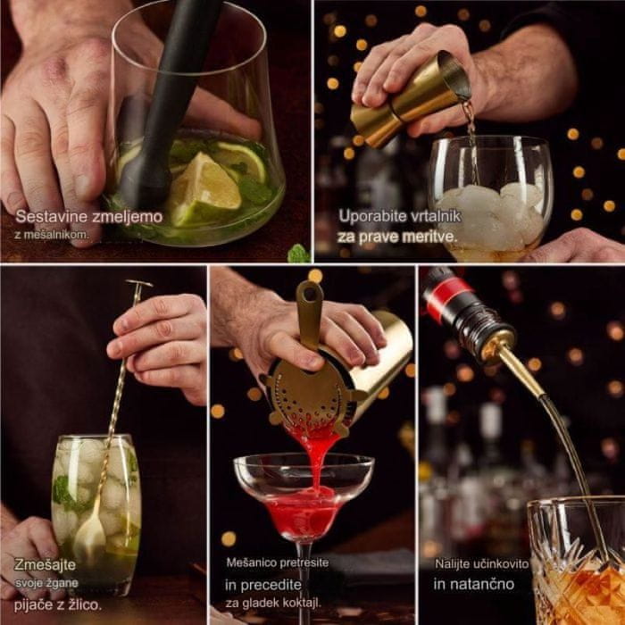 KLASIČNI ZLATI KOMPLET ZA PRIPRAVO KOKTAJLOV