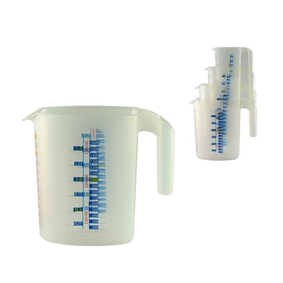 • Trdna plastična merilna skodelica s prostornino 1500 ml je zaradi prozorne lestvice primerna za merjenje nepakiranih in tekočih živil.