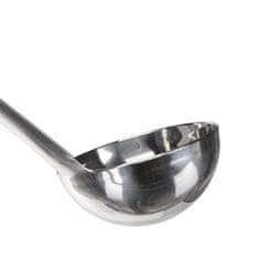 Profesionalna ZAJEMALKA DE BUYER One-piece Ladle iz nerjavečega jekla je posebej trdna in primerna za intenzivno profesionalno rabo. Premer zajemalke meri 8 cm, dolžina ročaja znaša 28 cm (skupno meri zajemalka 36 cm), njegova širina pa 2,5 mm. Zajemalka drži 0,13 l tekočine.