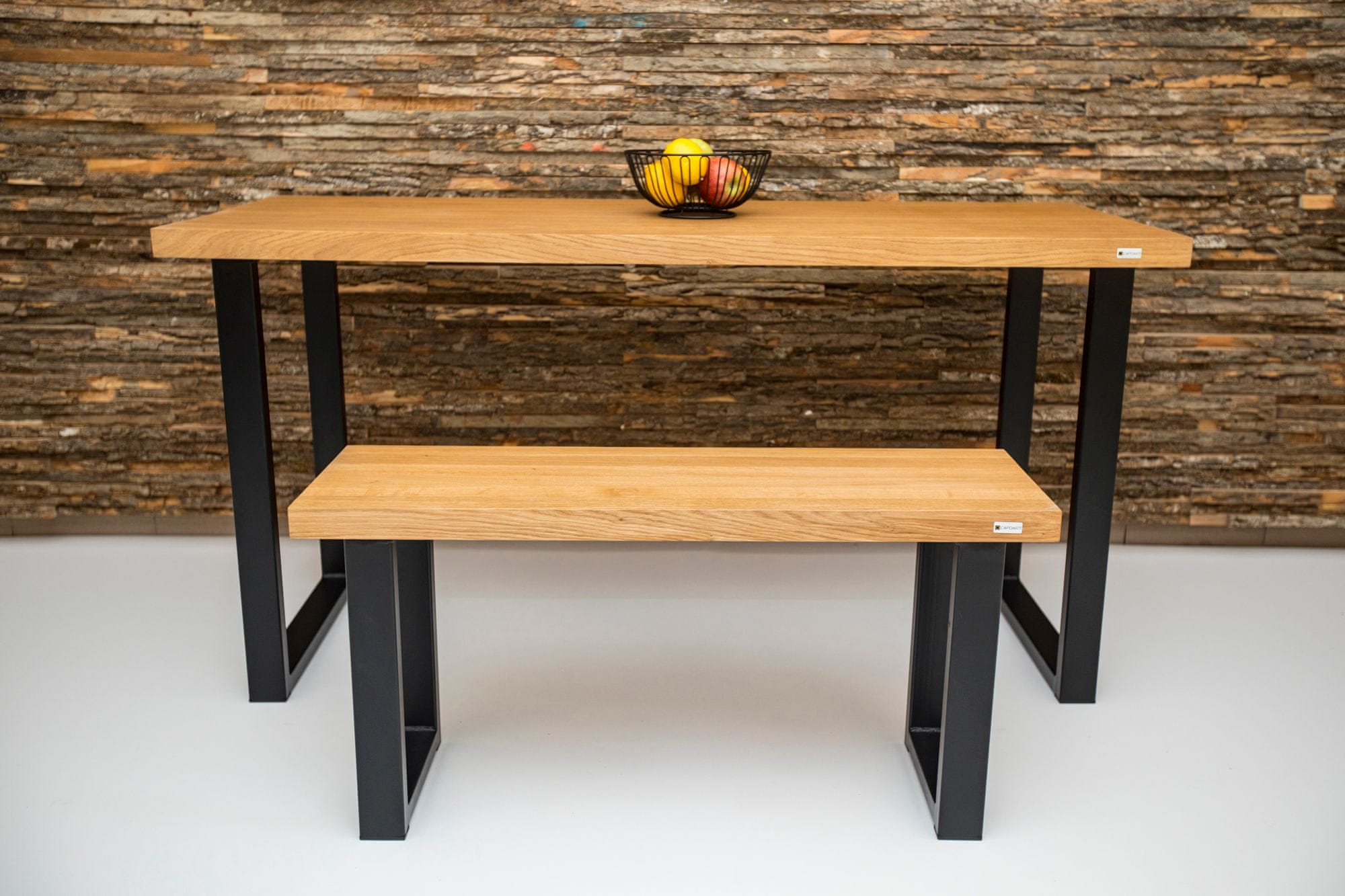 Ročno izdelana lesena jedilna miza CAPOARTI®. Sestavljata jo dve črne kovinske mizne noge v obliki črke U in mizna plošča iz hrasta. Miza navdušuje s svojo kakovostjo ter ‘’industrial’’ videzom in je na voljo v različnih dimenzijah. IZ ROK MIZARJA V VAŠ DOM – CAPOARTI®. IZDELANO V SLOVENIJI! Celoten opis