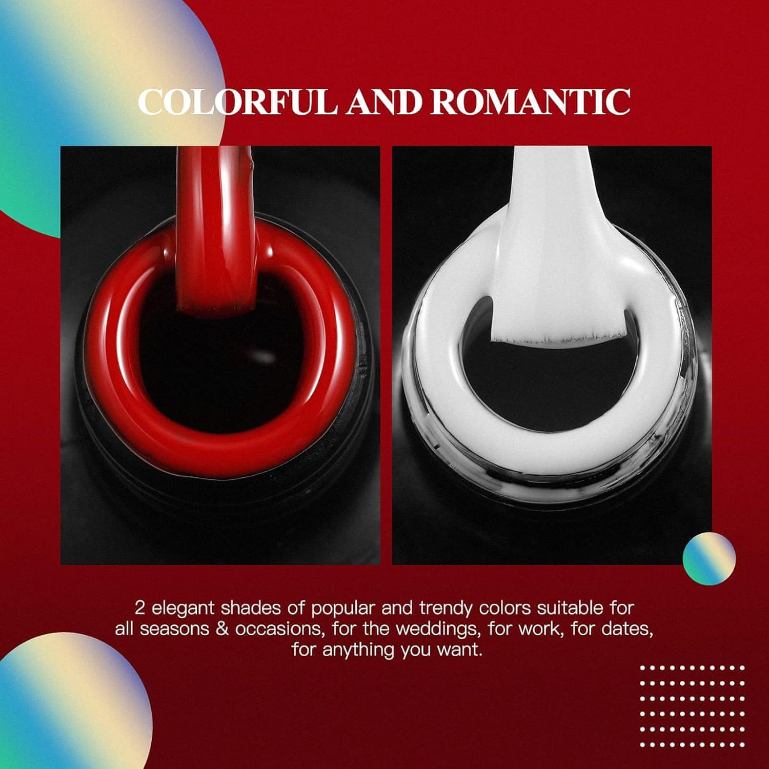 • 2 × 15 ml semi-permanentni lak za nohte RSTYLE:Ta izdelek vsebuje 2 × 15 ml gel laka za nohte, 2 x robčka za odstranjevanje laka za nohte, klasična kombinacija rdeče in bele barve, popolna za salonsko manikuro in domačo nego nohtov.