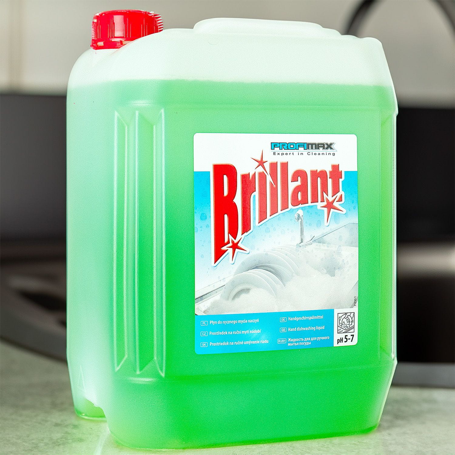 PROFIMAX BRILLANT je nenadomestljiv izdelek v vsaki kuhinji. Zahvaljujoč svoji učinkovitosti prihrani tako čas kot denar, saj traja dlje kot drugi izdelki. Tekočina učinkovito odstranjuje maščobo in umazanijo, tudi v hladni vodi, kar je izjemno priročno in praktično za vsakodnevno uporabo.