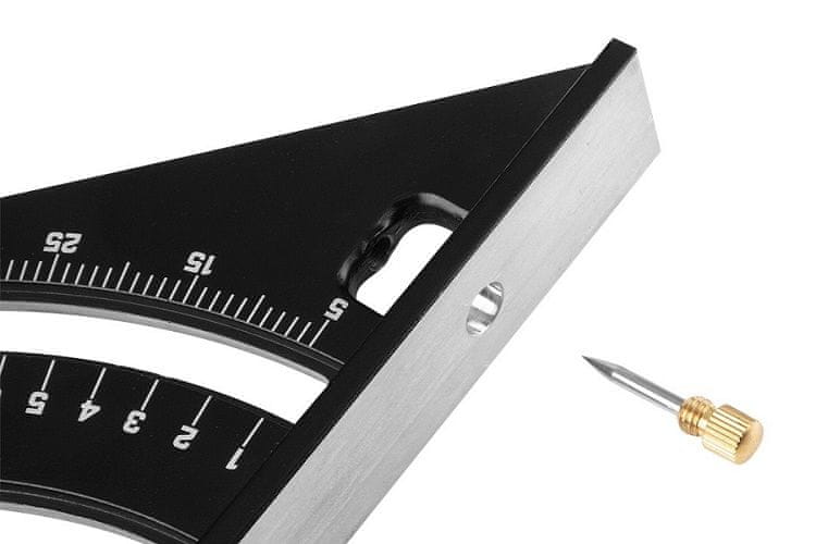 Kotni nosilec je izdelan iz aluminija, ravnilo pa iz nerjavnega jekla.