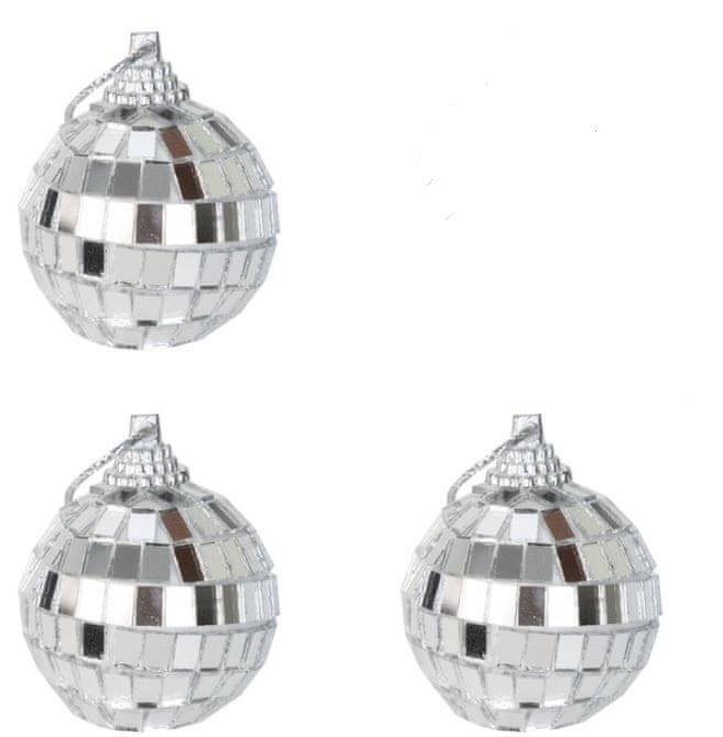 BOŽIČNI OKRAS V OGLEDALNIH KROGLAH 7 CM – SREBRNE DISCO KROGLE, 3 KOS