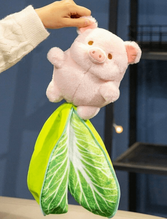 Ta edinstven plišasti pujsek, skrit v zeljnih listih, je zabavna in izvirna plišasta igrača, ki bo vsakomur narisala nasmeh na obraz. Izdelana je iz mehkega, prijetnega materiala, zato je odlična za crkljanje in kot darilo.