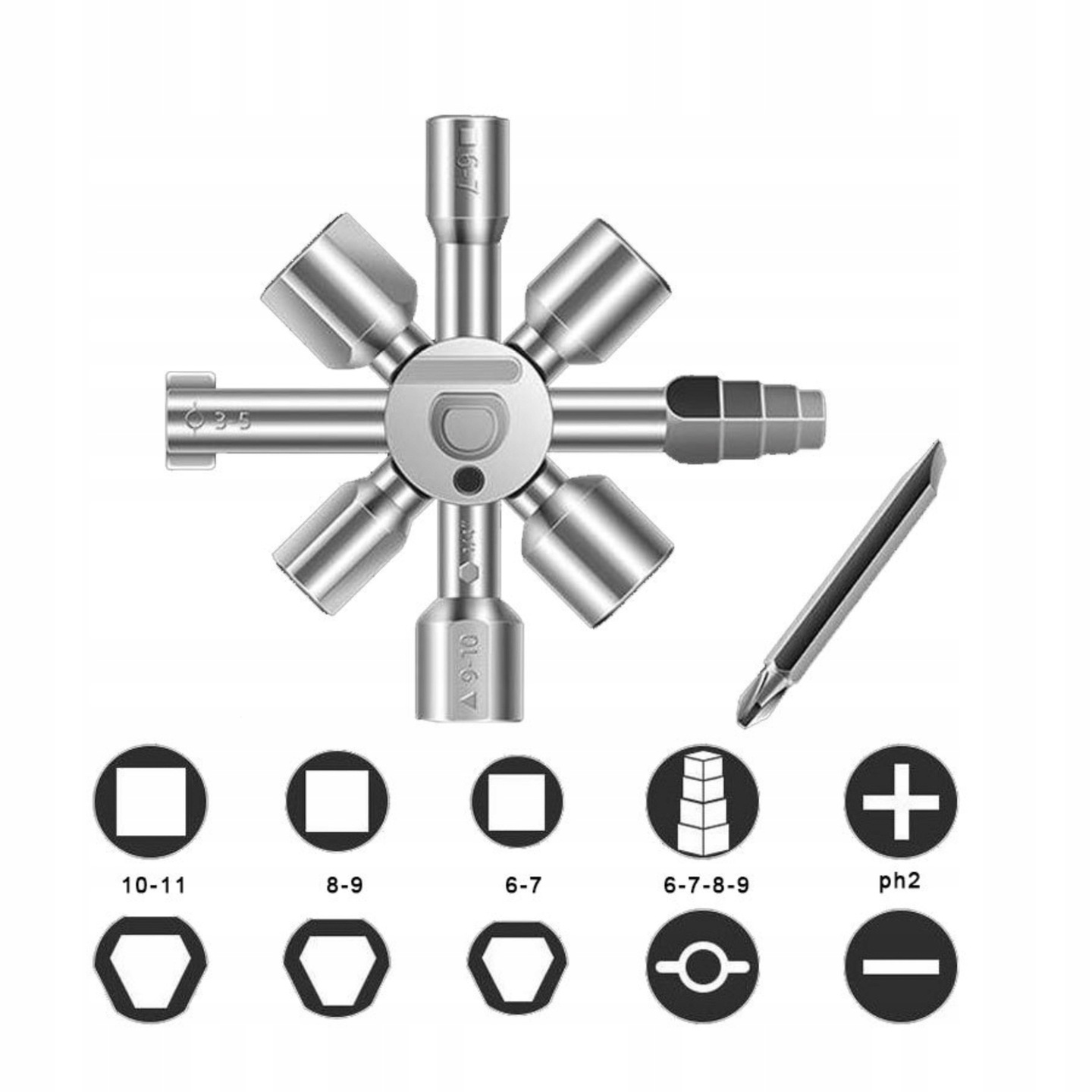 za ključavnice v tehničnih inštalacijahRazličica z 8 kraki (2 ključa, povezana z magnetom – zaradi česar je orodje bolj kompaktno)