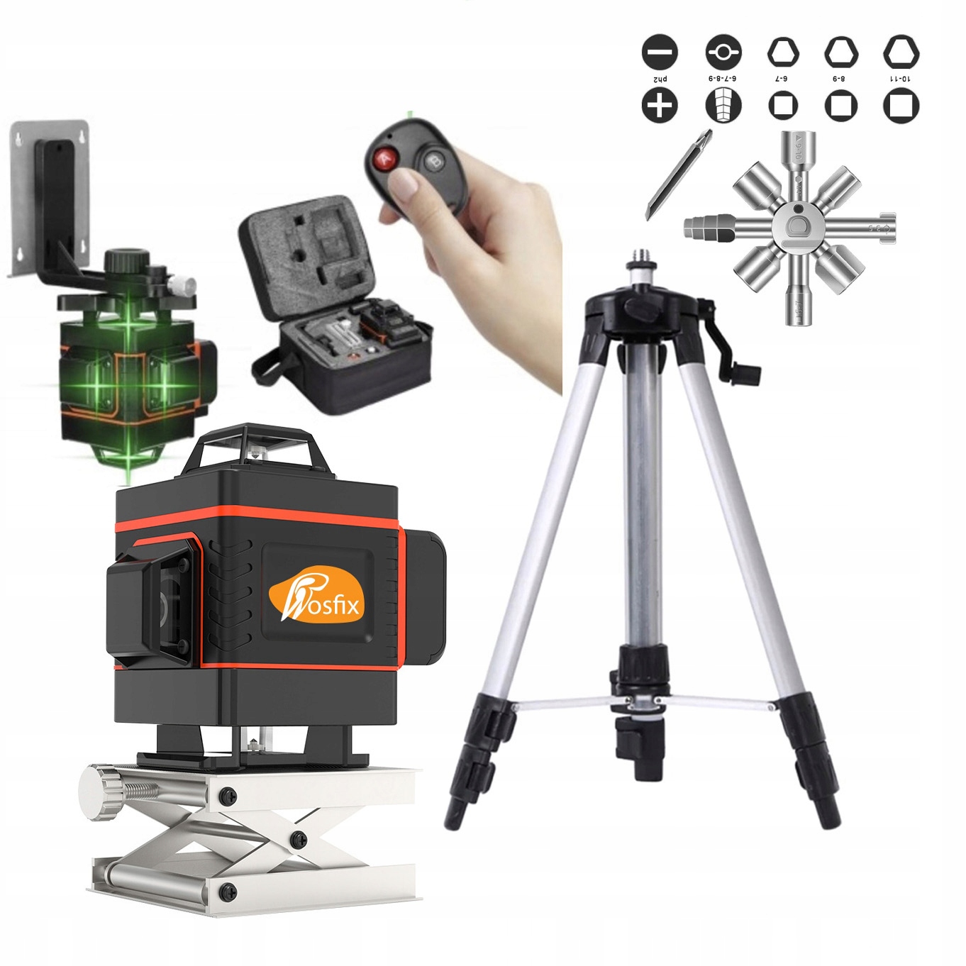 Rosfix „Orange Eye“ 4D križni linijski laser s stativom in ključem