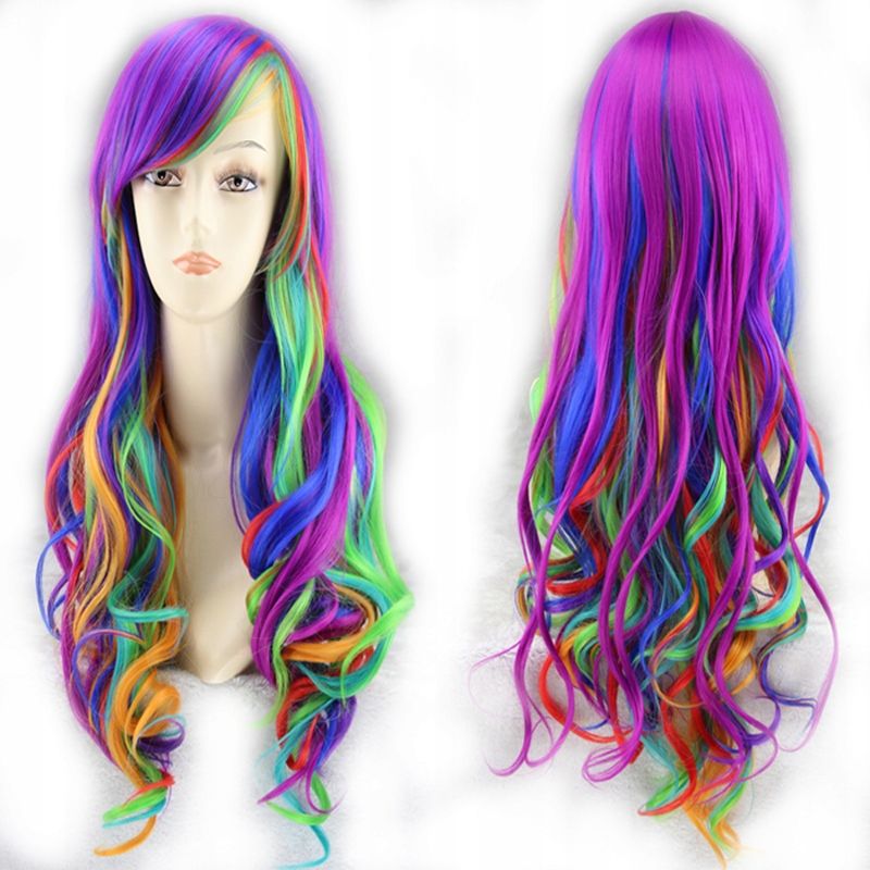 PERUKAA PERUKA z barvnimi lasmi, ki so narejeni na mreži. Izdelana je iz sintetičnih vlaken (visokotemperaturna vlakna – plastika PET).✅Bila bo senzacionalen dodatek k vašemu kostumu. Lase lahko oblikujete na poljuben način. Celoten opis