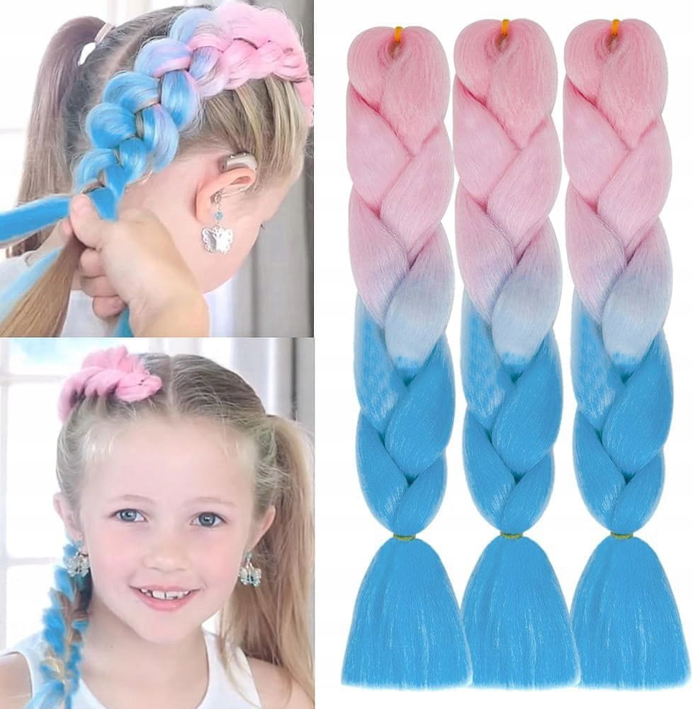 Sintetični barvni lasje v obliki rožnato-modre ombre kite. Zelo lahki, ne obremenjujejo naravnih las. Primerni za izdelavo kit ali dredov. Žive barve dopolnijo vsako pričesko. Dolžina kite: 65 cm, skupna dolžina: 130 cm. Ponudba velja za eno kito. Celoten opis