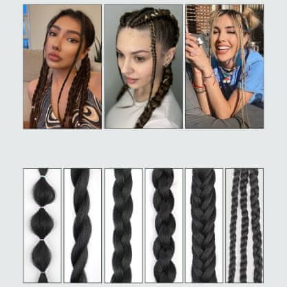 Podaljški za lase BRAIDELLA, izdelani iz vrhunskih toplotno odpornih sintetičnih vlaken, se brez težav povežejo z vašimi naravnimi lasmi in brez težav dosežejo brezhiben videz, ki se ne razlikuje od vaših lastnih.