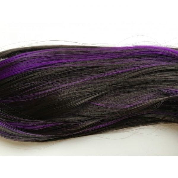 Sintetični čop na trak, raven, temno rjav z vijola prameni, dolžine 56cm Celoten opis