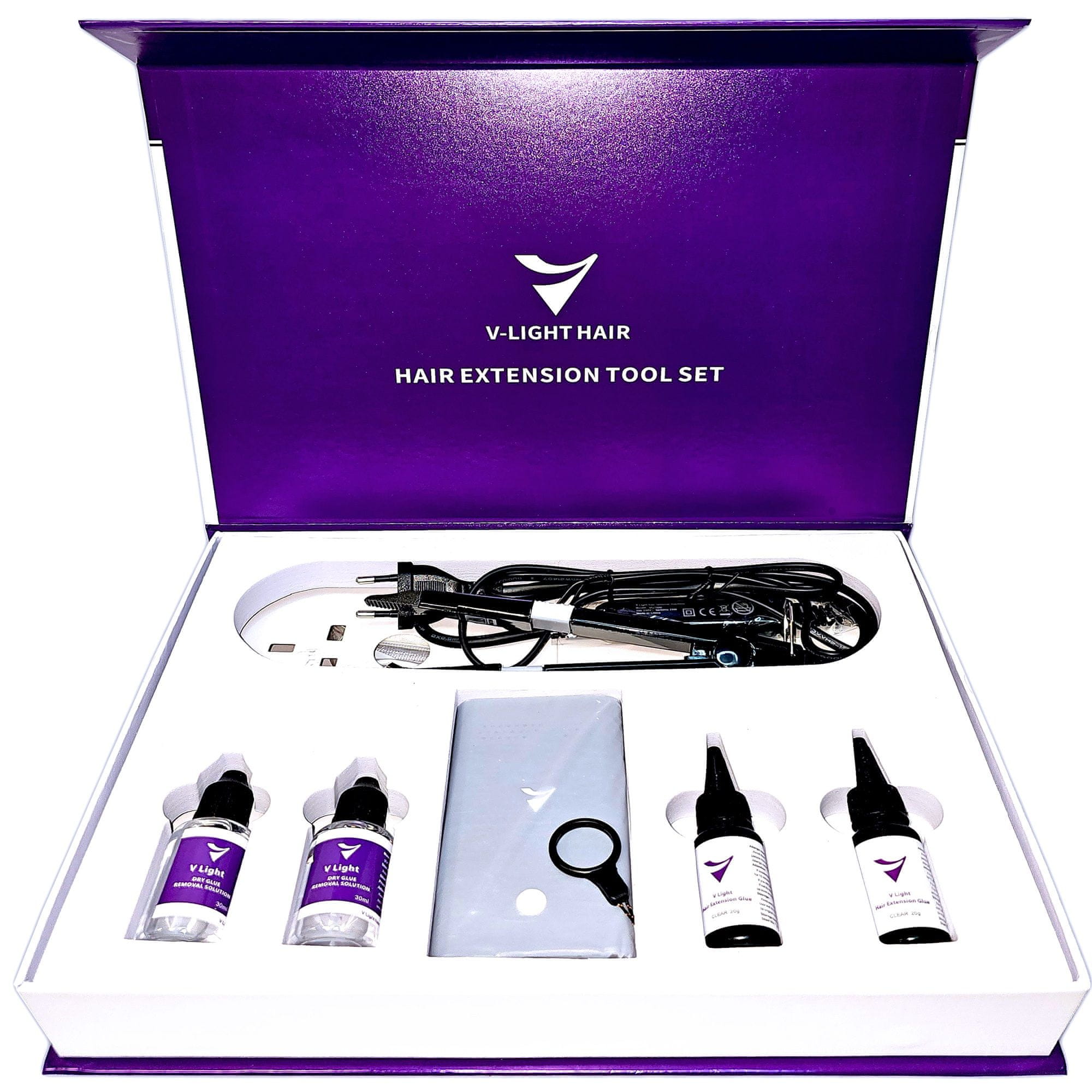 Ponujeni set je najpopolnejši paket izdelkov V-Light, ki vam omogoča, da v celoti izkoristite zmogljivosti naprave V-light in celovito obdelate lasne podaljške ter jih odstranite in vlečete navzgor.