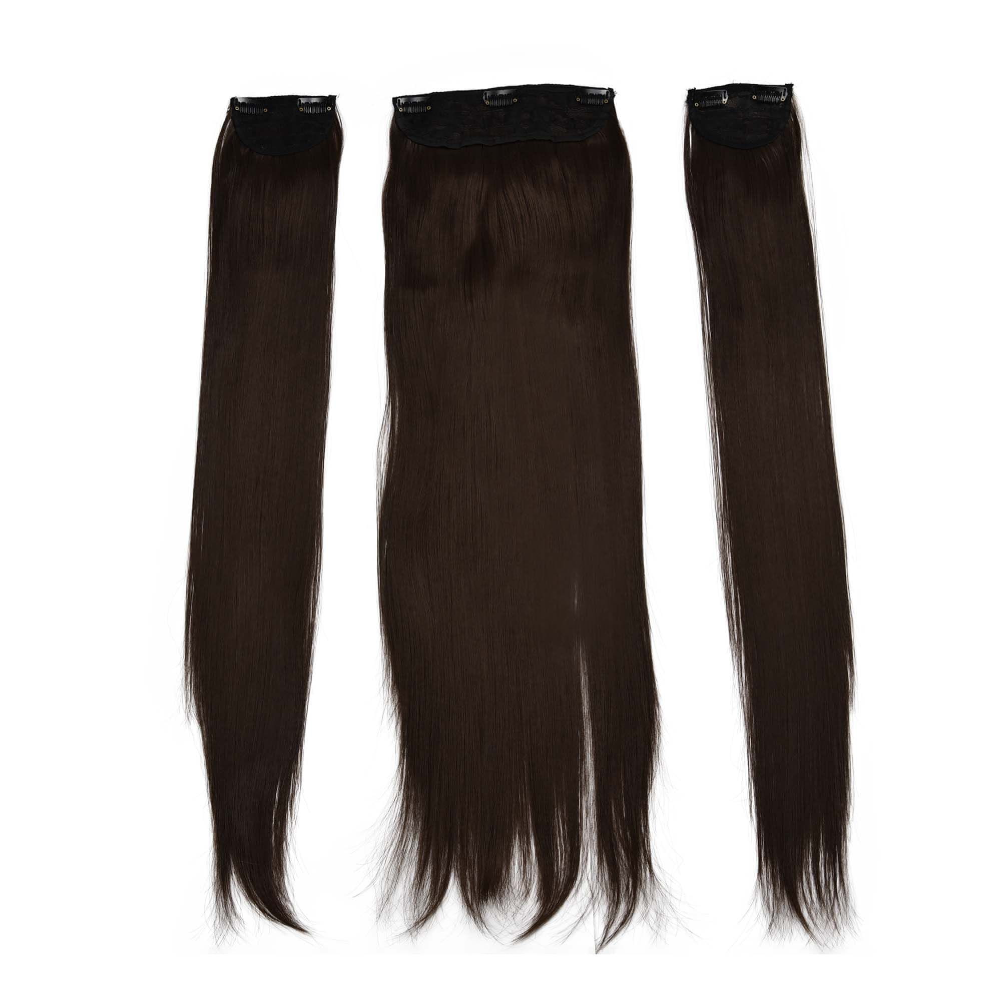 Sintetični clip-on lasni podaljški na 3 zavese, ravni, čokoladno rjavi F3, dolžina 60cm Celoten opis