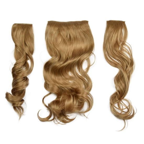 Sintetični clip-on lasni podaljški na 3 zavese, skodrani, karamela F8 , dolžine 50cm Celoten opis